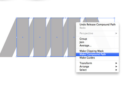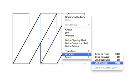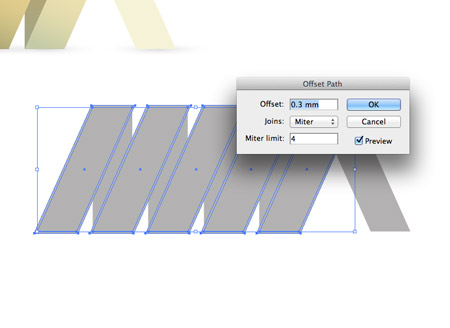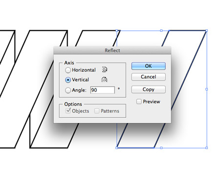یکی از مستطیل های اریب را انتخاب کنید و از طریق Object>Transform>Reflect و انتخاب محور عمودی، آن را قرینه کنید.