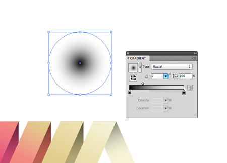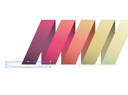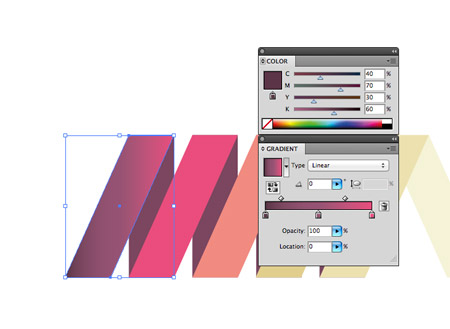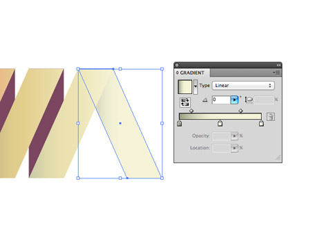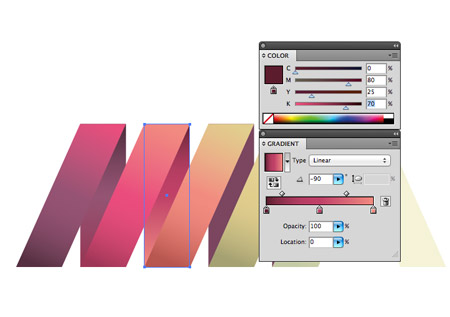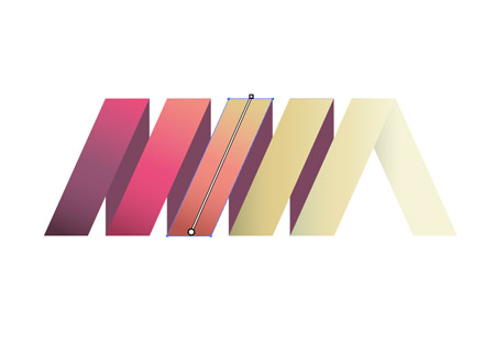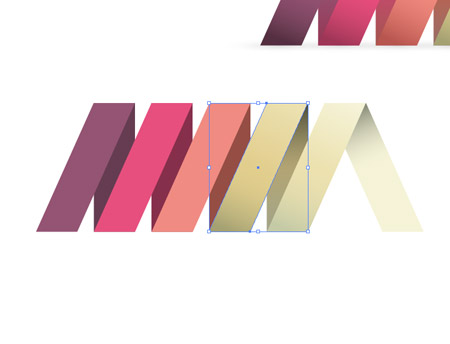 برای همه ی مستطیل های اریب این کار را تکرار کنید. گرادیان ها یک جلوه ی سه بعدی به کار می دهند. علاوه بر این می توانید رنگ شروع هر گرادیان را نزدیک رنگ پایانی گرادیان قبلی انتخاب کنید تا طبیعی تر جلوه کند.