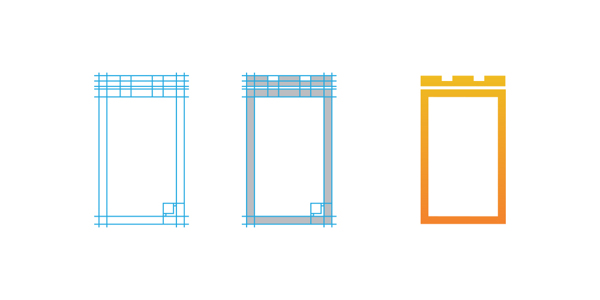 مستطیل اریب قرینه شده را در انتهای سمت راست قرار دهید تا طرح اولیه ی لوگو آماده شود.